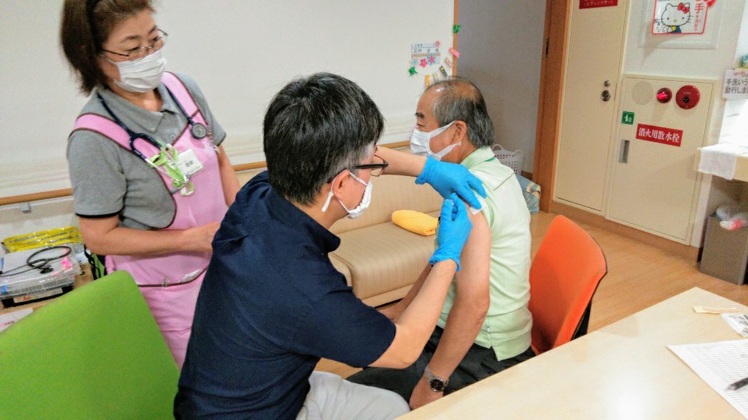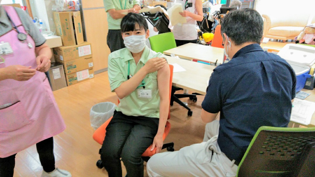 ご入居者は勿論のことながら、我々スタッフの接種も開始しております。