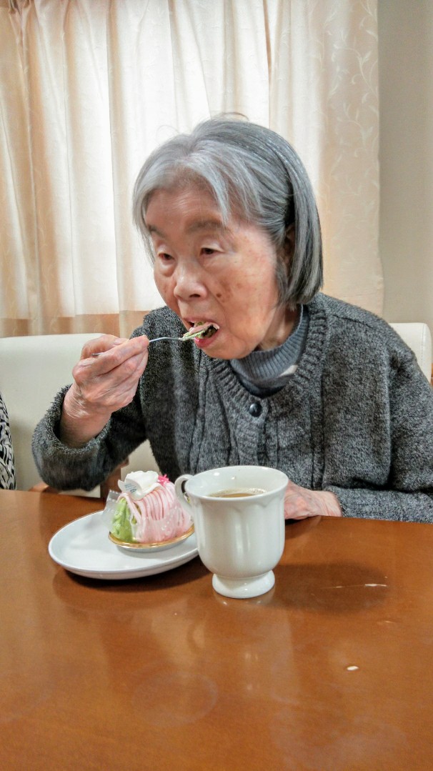 お口にケーキを運んだ後の笑顔( *´艸`)