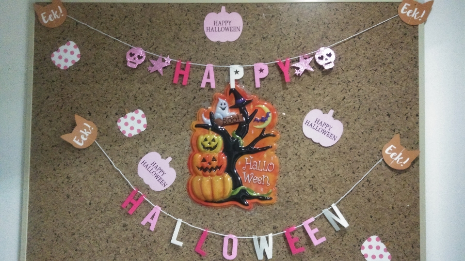 皆の家庭からハロウィンの飾りを持ちより、装飾しました☆