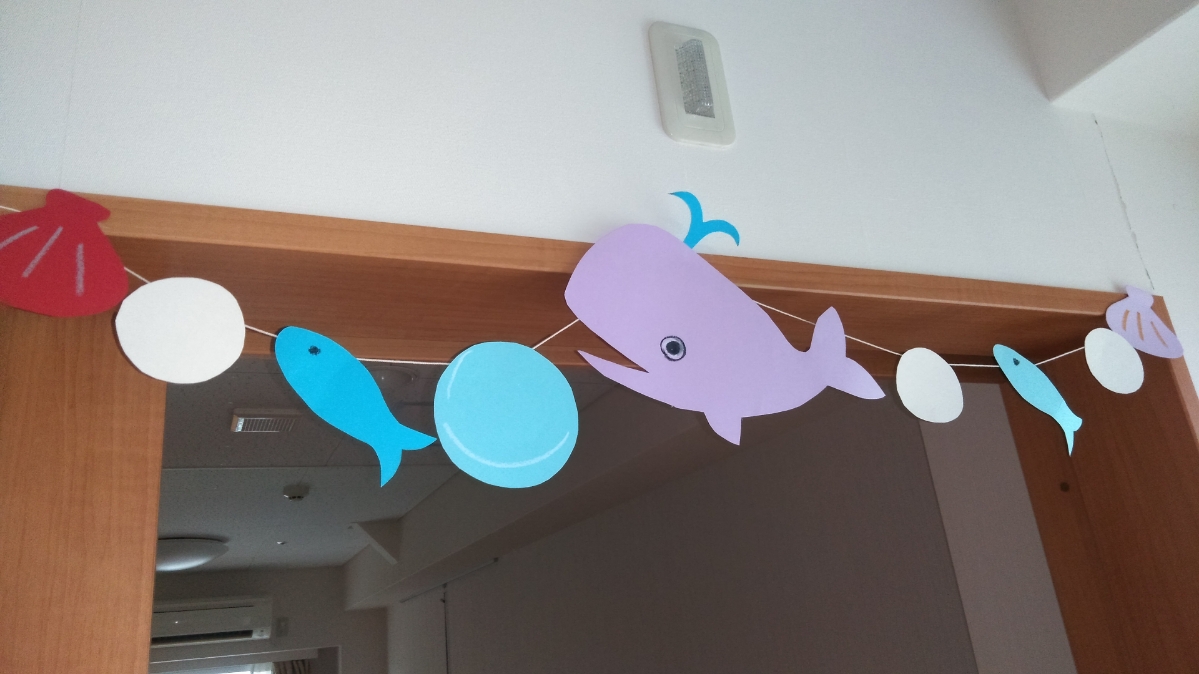 今日は各お部屋の入口、フロアの飾り付けをしています