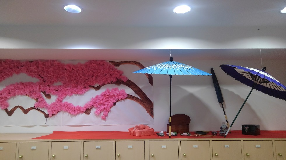 いえいえ桜満開宣言です。ご入居者様ご家族様に春を感じていただこうと