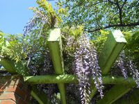 ご入居者様のお散歩コース、染の井公園の藤の花も満開を迎えています。