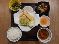 「天ぷら定食ですよ」 サクサクの天ぷらは、毎回大好評です。