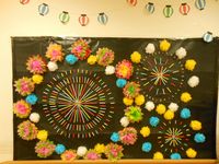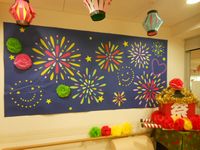 小さな折り紙を飾り切りや、花火のひとつひとつの