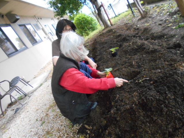 入居者様と一緒に植え替え!!