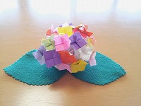 一緒に、フェルトとおりがみで作った紫陽花も一緒に飾っています。