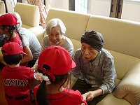 今日は、さつき幼稚園の園児と、楽しいふれあい会です。