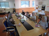 6月のカレンダーは紫陽花の絵で、色鉛筆を使って塗って頂きました。