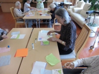 みなさんハサミを持って、色紙を切り、