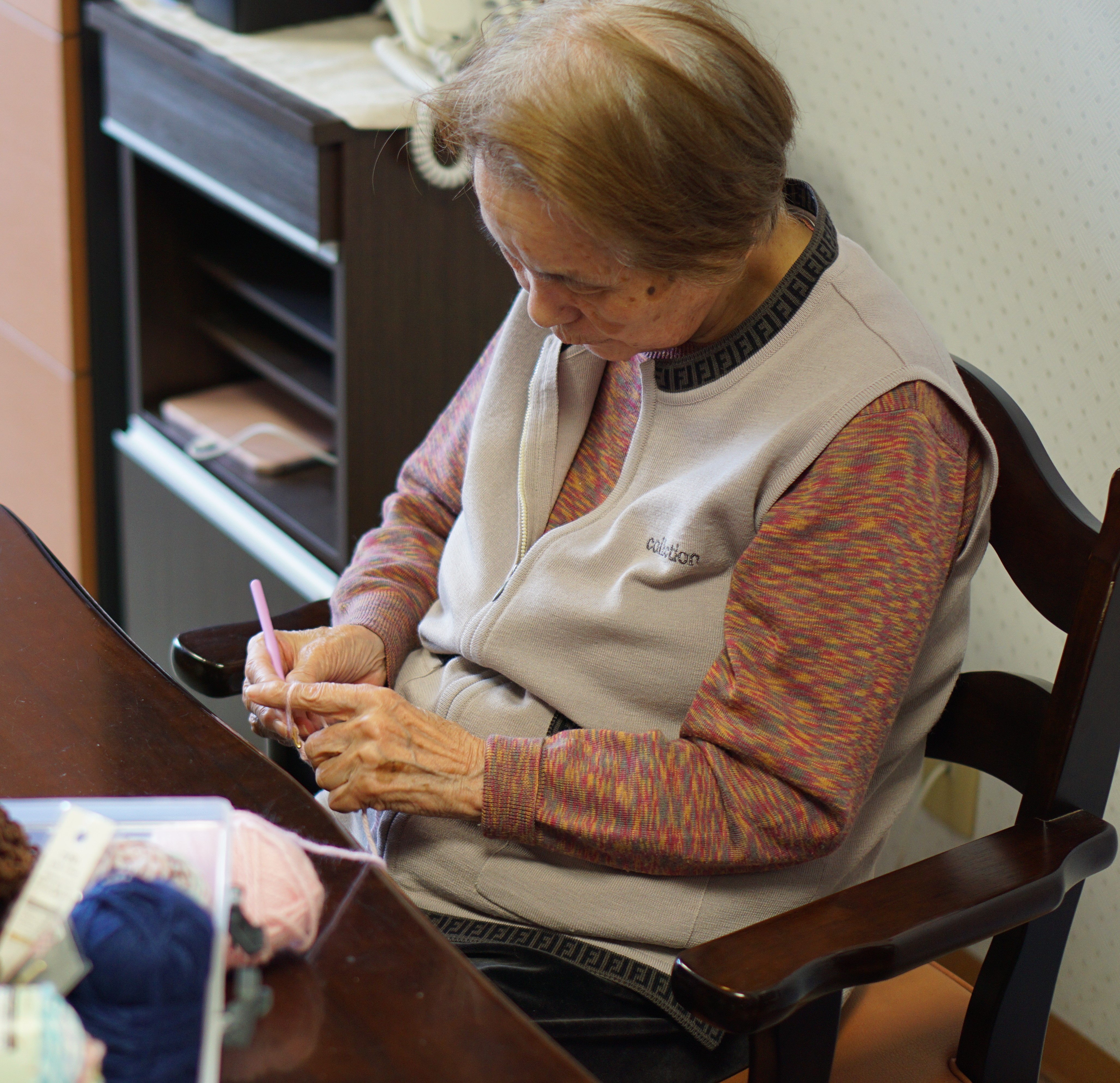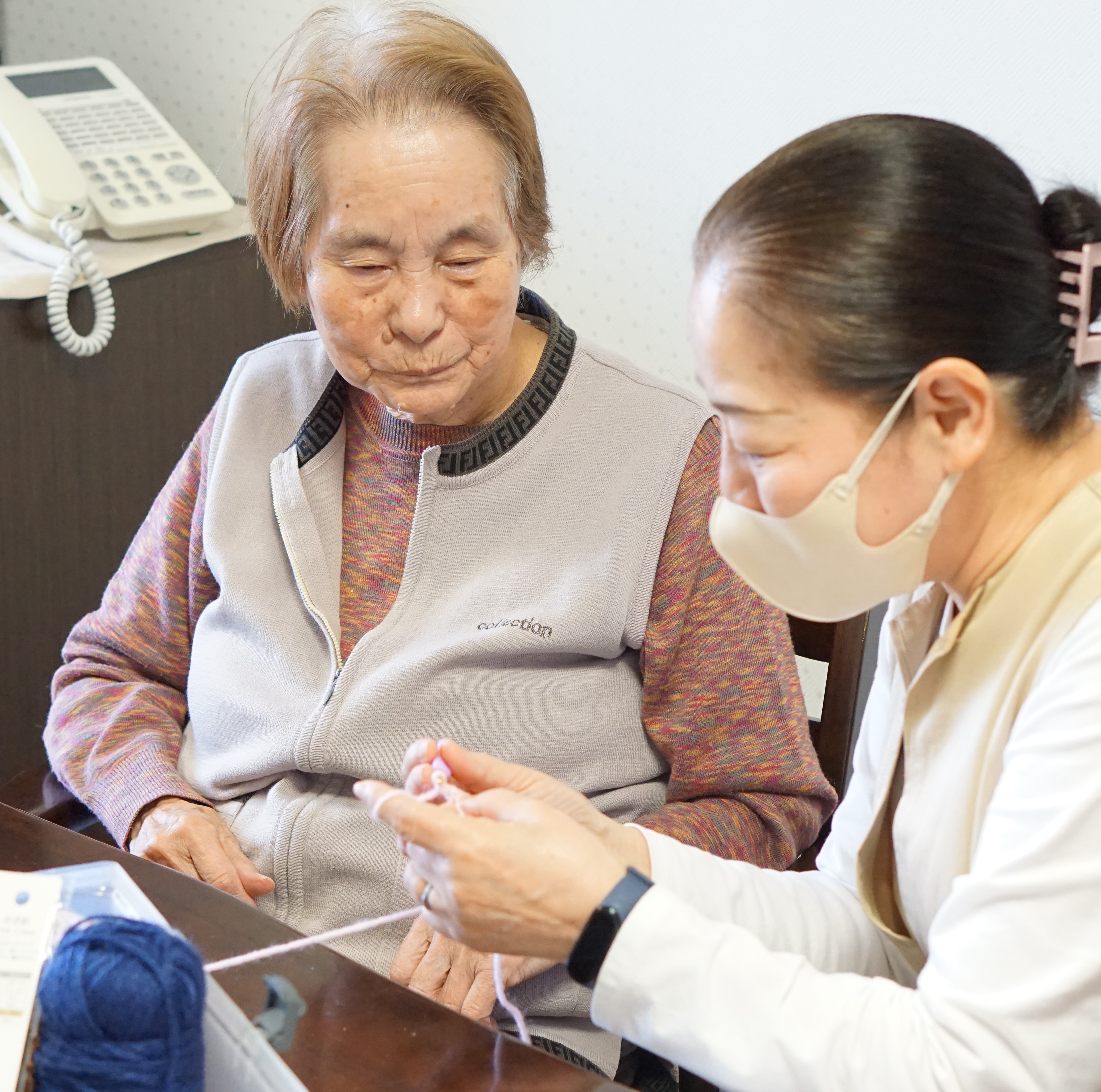 編み物を教えてくださるボランティアの方を招いて