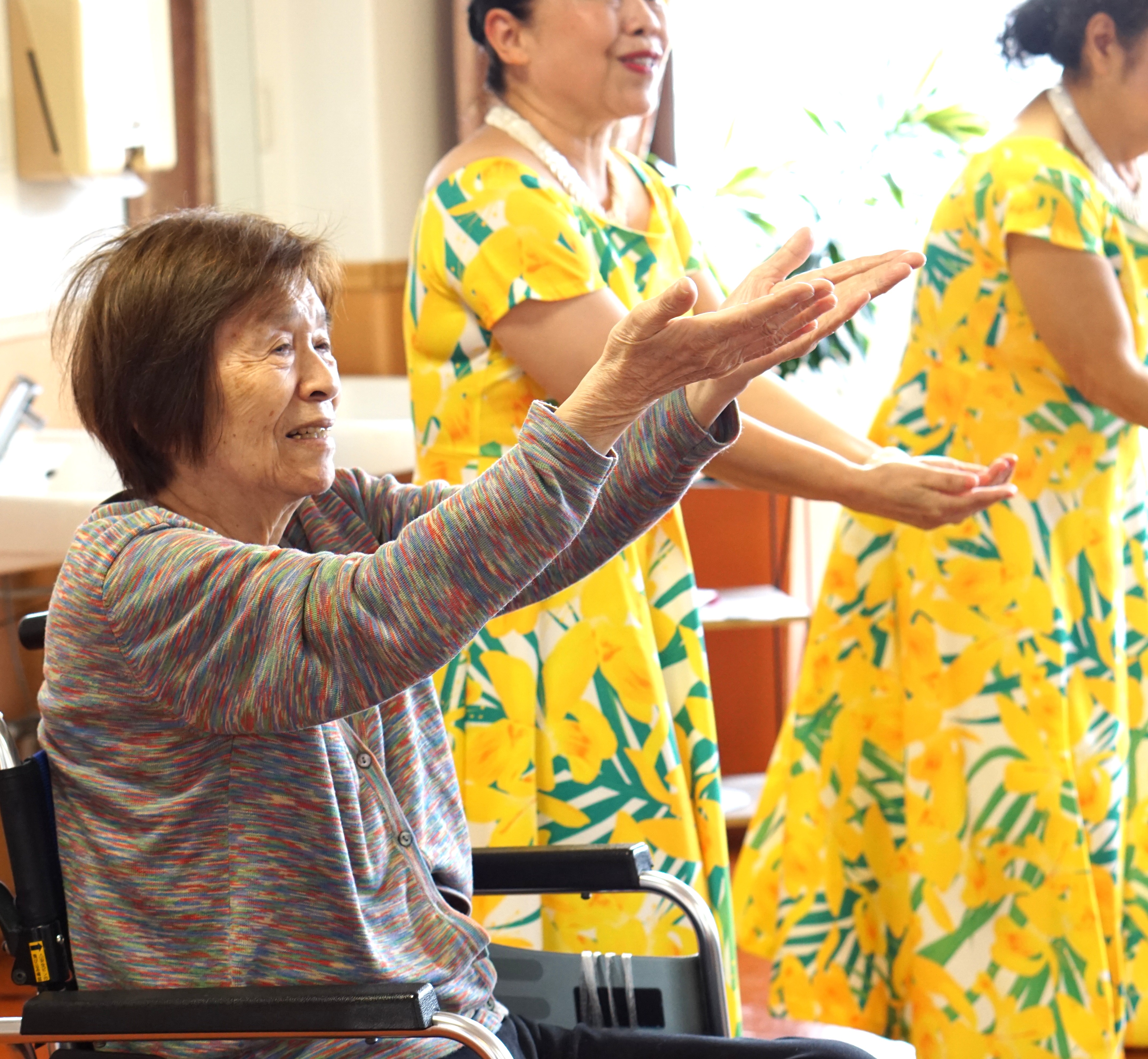 皆さんの前に出てフラダンスを披露してくださいました。