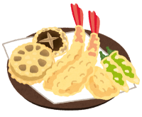 ○天ぷらの盛り合わせ(海老1本、きす1尾、帆立1個、なす、赤ピーマン)