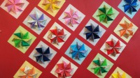 皆様、本日も良い天気で何よりです! 今回は入居者様の作品を紹介していきますね! 色とりどりの折り紙を日々少しづつですが、丁寧おっていただいた作品が集まりましたのでそれを職員がまとめあげました。とてもすばらしい壁紙となってフロアが鮮やかです。ヾ(⌒▽⌒)ゞ