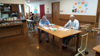 さて、本日のレクは簡単な計算問題を行いましたが、たちまち『簡単すぎ。もっと難しい問題を出してほしい』との要望がありました。例えばですが、数字を全部日本語になおした計算問題はどうでしょうかと投げかけたところ、いいね!楽しそうだね!と皆様期待されていました。(*´罒`*)ニヒヒ