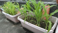 オクラがところ狭しと生えてきており、早めに植え替えをしないと・・・思ったり、なんと、とうもろこしも