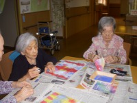 先週、和紙にお好きな色で染めた和紙を使いまして、本日、うちわの骨組みにその和紙を貼り、オリジナルのうちわが完成いたしました!皆様、ご自身が染めたものがとても素敵なうちわになって大喜びでした。ヾ(⌒(ノ’ω’)ノわーい