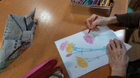 本日は、母の日も近いとのことで皆様はカーネーションのぬり絵を行っていただきました。色鉛筆やクレヨン、水性マーカー等、入居者独特な色の使い方が見られましたよ。完成した作品はまた後日報告いたしますのでお楽しみお待ち下さい。