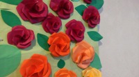 皆様、季節も変わり肌寒い朝、夕 いかがお過ごしでしょうか。今回も入居者の皆様の作品をお届けいたします。 福山市といえばバラが有名です、コロナウイルスが流行する前はバラ公園にバラを見に外出されておりましたが、外出自粛の為なかなかバラを見に行くことが出来ませんでした。その自粛中の中、バラの花を少しずつではありますが、入居者の皆様にバラの花びらを作っていただき、この度壁に飾ることが出来ました。皆様、とても丁寧に作っていただきましたよ。感謝しております!今後は実際にバラの花を見に行ったときの様子をご紹介できたらと思います!