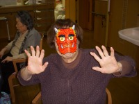皆様、もうすぐ節分ですね。( *¯ ꒳¯*) 節分といえば鬼が主役というか、皆様に豆を投げられ退散するという(厄払い)役目ですね。早速、職員が準備の為にお面を出してみたところ、入居者の皆様はわれが鬼だ!といわんばかりのとても元気な鬼に変身してしまいましたよ!!!ΣΣヽ(・Д´・゚+。)ェっ‥マジっ 中には97歳になられる方も元気な鬼になっております。(ᅙωᅙ)ふっふっふ