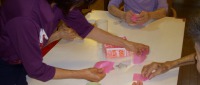 利用者様に素材を丸めて頂き、ひとつづつ壁紙に貼り付けます。