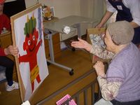 鬼(職員)に向かって思いっきり豆(紙玉)を当てて、