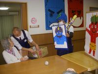 はぴね福山では入居者様と「棒サッカー」に取り組んでいます。
