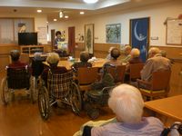 利用者様の皆さん、体を乗り出して耳を傾けていらっしゃいます。