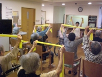 はぴね福山では6月27日(土)にグループ会社である酒井医療株式会社の作業療法士室賀みよ子さんに来ていただき、健康体操を行いました。