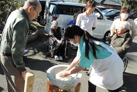 餅つき大会を園庭で行いました。