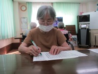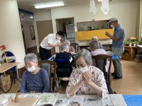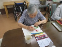 塗り絵、写経、新聞たたみなど、皆様真剣な顔でされていました。