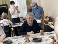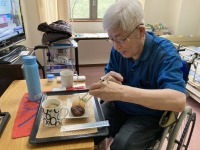 なぜお彼岸におはぎをいただくのでしょうか?諸説あるようですが、これは、あんこの原料の赤い色が「邪気払い」の力を持つ縁起物として親しまれてきたからだと言われているようです。今日はご利用者様の邪気払いにと、おはぎを作らせて頂き、おやつに召し上がって頂きました。マーおいしそうに・・・と言われ、口に入れられると美味しい・・(*_*;と言って喜ばれました。