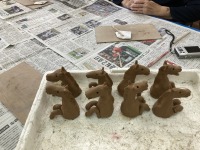 今日は第3土曜日、陶芸教室が開催されました。あゆ茶屋の先生の手ほどきを受けながら、来年の干支(馬)作りをしました。作り始めてから何が何だか分からないと言われる方も、次第に馬の形が出来てくると、かわいいいね(*_*;とか、仲良くしてねとか言われていました。新年を迎える頃には焼き上がった干支の馬が完成することでしょう
