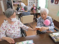 その後は、スタッフ手作りのお花をプレゼントさせていただきました。花を開くと、一人一人にメッセージが書かれており、うれし涙を流す方もおられました。