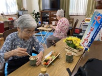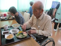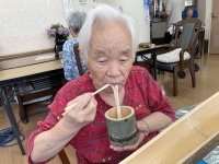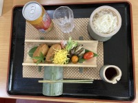 少しでも涼を感じて頂こうと、流し台は竹製、器類も竹製にこだわり準備しました。BGMはせせらぎの音響で涼を感じて頂きました。普段食の細い方も、美味しいよ・・・と腹一杯召し上がられ、涼を感じる一時を過ごして頂くことが出きたと思います。
