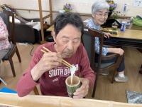 連日、熱中症警戒アラートを耳にする毎日ですが、今日は、夏の風物詩「ソーメン流し」で涼を感じて頂きました(^_-)-☆
