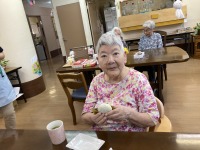 外は真夏の装い、今日は、スタッフが利用者様に柏餅を食べて元気になって頂きたいと、朝早くから柏餅を包む(山帰来)の葉を採り、(昔は根茎を薬用として使ってきた歴史があったり、山で病にかかった人がこの実を食べて元気に帰ってきたと言われることから、山帰来という名が付いたそうです)おやつに食べて頂き皆様とても喜ばれました(^_-)-☆