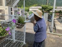 今日は、鉢植えの花に水やりを手伝って頂きました。