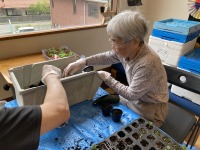 今年も利用者様が種まきされた花の苗が育ち、専用のポットに移植しました。5月初旬には花壇やプランターに植え付け、中旬頃には開花予定です🌻((^_-)-☆ ペチュニアや百日草など開花が楽しみです。