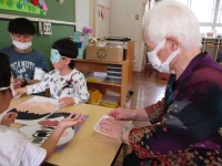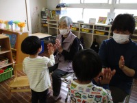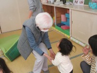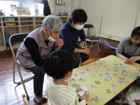 最初、お互いに自己紹介をした後は元気な歌声を披露してもらい、一緒に手遊びをしました。その後も園児達と「お手玉」「福笑い」「かるた」等、一緒に楽しいひと時を過ごしました。
