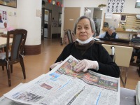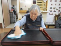 お盆を拭かれたり、新聞を畳んでもらったり、コップを洗ってもらったりと様々なことを手伝って頂いています。