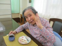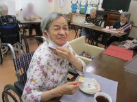 その後はおやつに紅白まんじゅうを食べていただきました。皆様、口いっぱいに頬張っておられ幸せそうな顔をされていました。