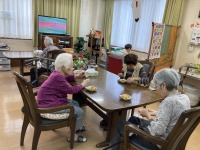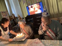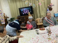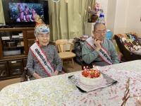 今日は10月に、89歳、84歳をお迎えになられたお二人をスタッフ手作りのケーキでお祝いさせて頂きました。🍰 ある方が何歳になられたのですかとお尋ねになり、年齢を聞かれ若ぶりだねと驚いておられました。!!プレゼントには衣類を贈らせて頂き大変喜ばれました。(^_-)-☆これからもお元気でお過ごしいただきますように!!