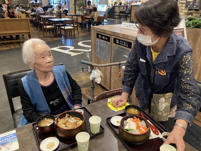 利用者様の誕生日のご希望で『新しい広島駅からチンチン電車が出るとことが見たい』『誕生日プレゼントのお菓子を自分で購入したい』といわれていたので一緒にお出かけしました。また、広島駅を見たいと言われた方もう一人おられたので便乗して頂くことに。フードコートで選んでいただいたのですが『かつ丼』がフードーコート内で一緒に食べれないことから別々にお食事に‥‥。食後のデザートのときに大好きなチョコレートケーキを食べていただくときにささやかに3人で「おめでとう~。」と祝福を。終始、楽しまれておられて戻られる際に「疲れましたね?」と声かけするが「全然!!」とかえされました。