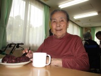 出来立ての大きなおはぎを食べながら「美味しいねー」「全部食べれるかね?」「ちぃと甘さが足りんよ!うちのはもっと甘かったよ!」と様々な声を聞くことが出来ました。