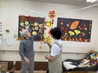 朝晩は秋らしくなりましたが、外は残暑が厳しく、秋本番はしばらく先のようです。一足早く季節感を味わって頂こうと、リビングに秋たけなわの飾り付けをお願いしました。