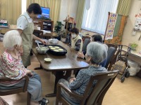 9月19日の午後からお彼岸の為、おはぎを作りました。スタッフがあんこともち米を丸めたものを用意し・・・ここからは!!皆様に頑張って頂く番です!!