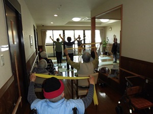 今回は入居者様にもご参加頂き、座りながら無理のない範囲で