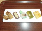 和菓子セットを注文すると、一口サイズの和菓子が5品と