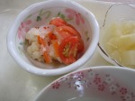 厨房さんが茄子のトマトソース和えとトマトサラダを作ってくださいました