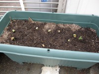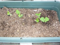 種から蒔いた枝豆が芽を出し、数日で双葉に